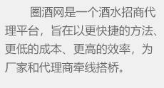 圈酒招商網是繼糖酒會之后的招商模式,為酒廠等生產經銷企業搭建一個更好、更快的酒水招商平臺